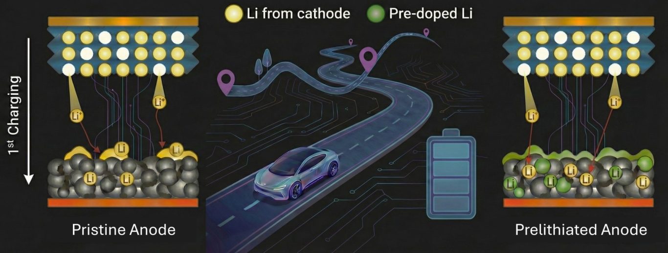 By offsetting first-cycle lithium consumption, more lithium remains available for normal operation—improving usable capacity and performance in applications such as electric vehicles and consumer electronics.